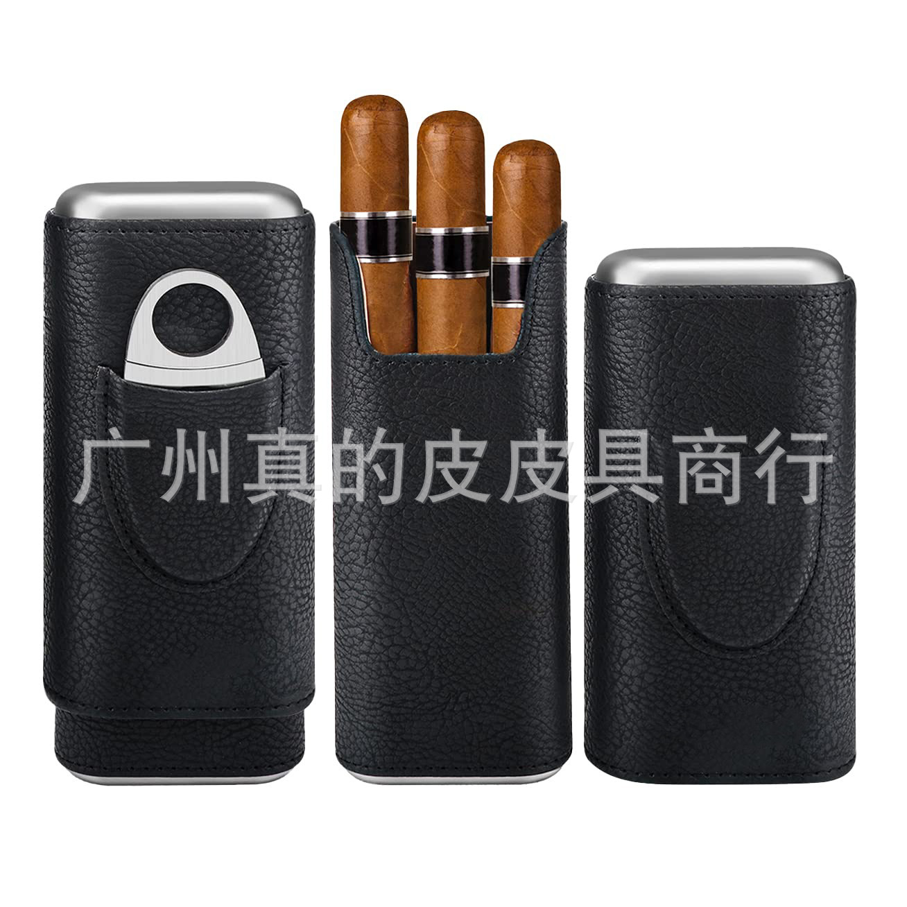 ナチュラルドロップ本革シガーケース3本入シダーウッド保湿シガーケース外出旅行ポータブル収納ケース