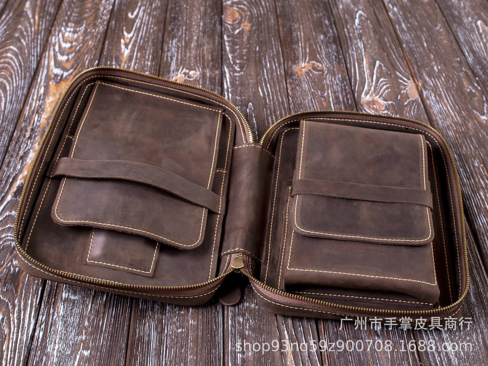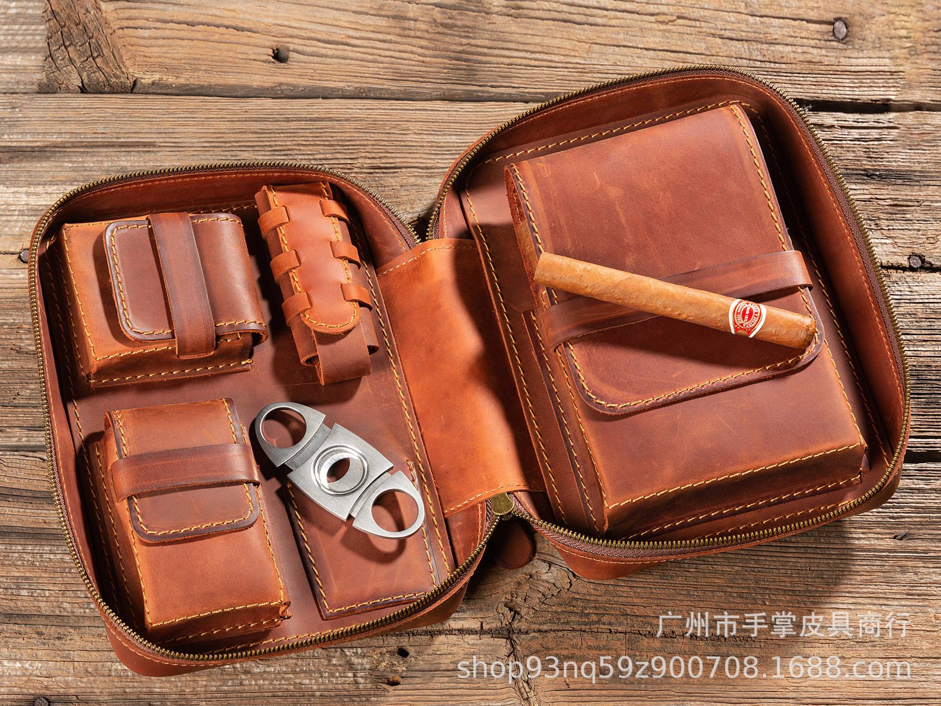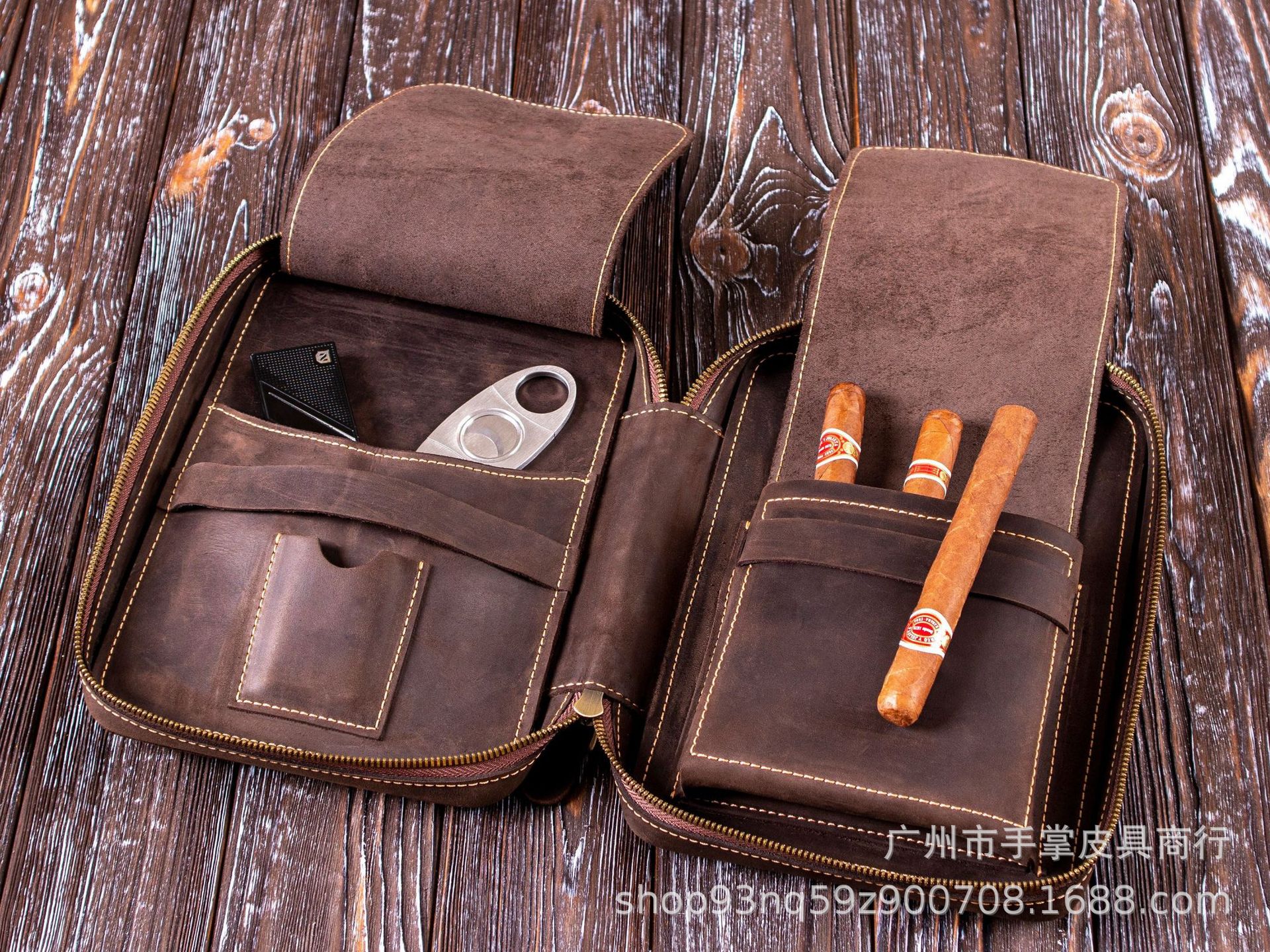 新商品欧米クロスボーダー本革メンズシガー収納バッグトップ層牛革大容量ジッパー手持ちシガーケース