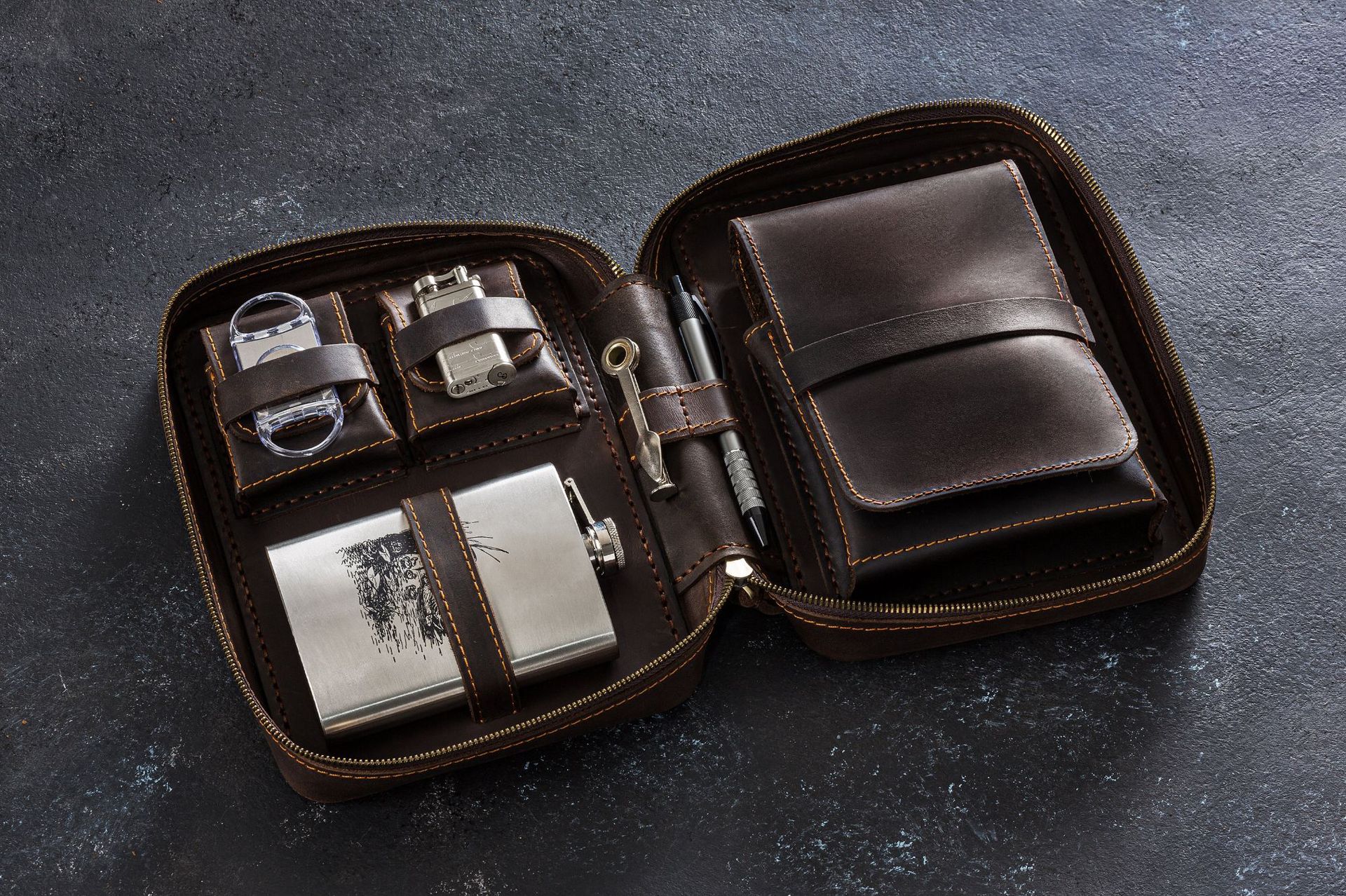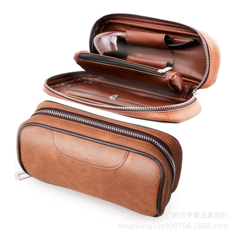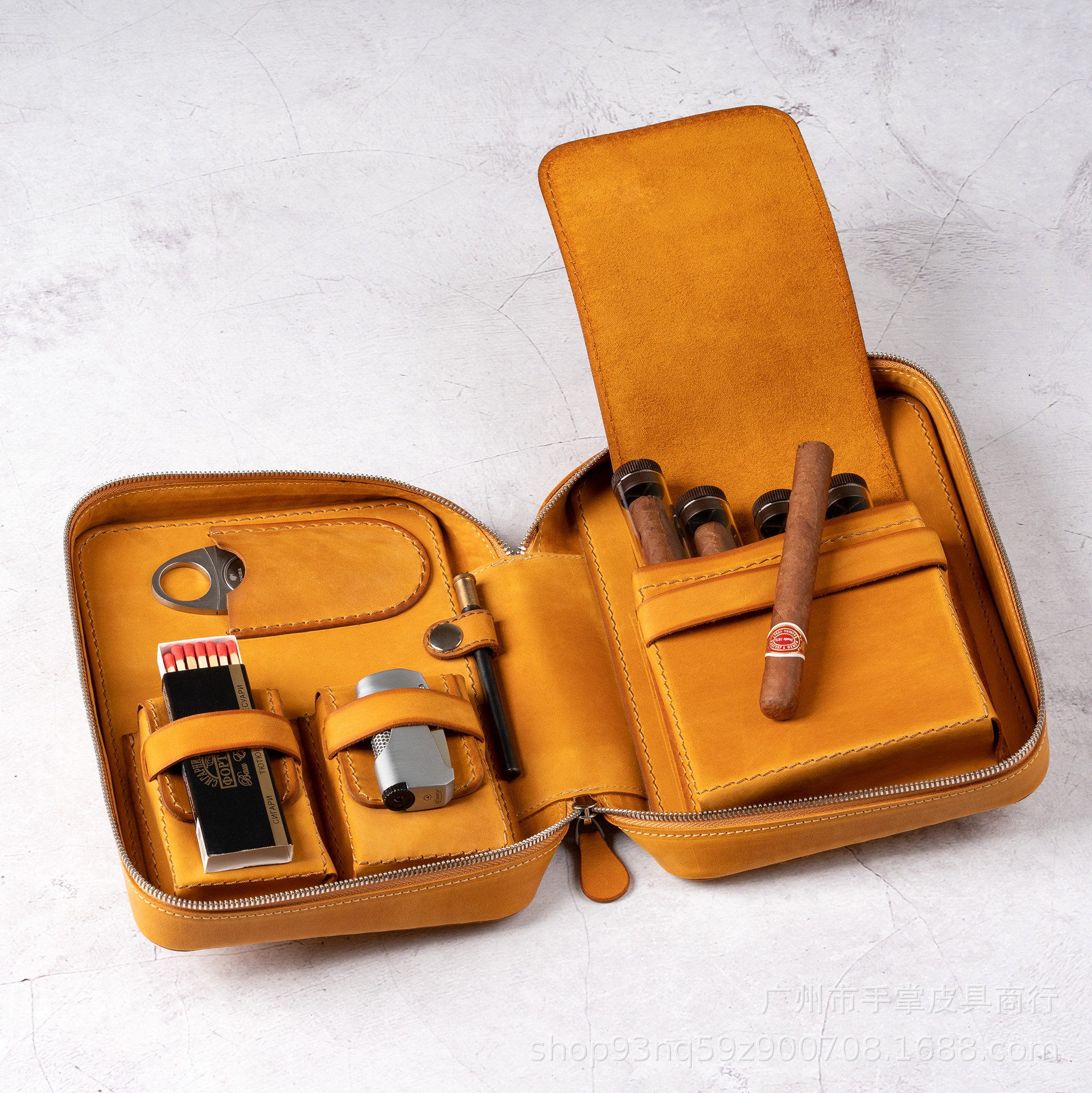 新商品欧米クロスボーダー本革メンズシガー収納バッグトップ層牛革大容量ジッパー手持ちシガーケース