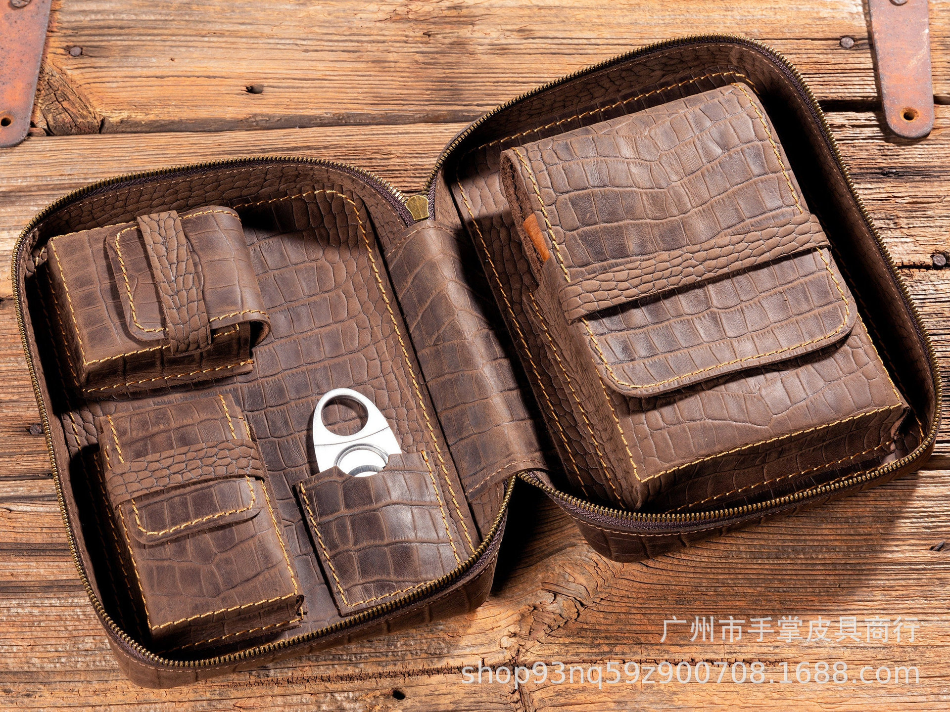 新型クロスボーダー欧米ワニ柄レトロシガー収納バッグトップ層牛革旅行携帯ハンディシガーカバー