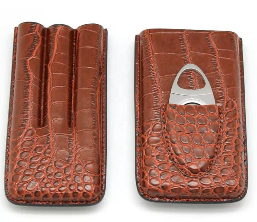 ワニの皮に似せた携帯用葉巻セット3本セットステンレス製の葉巻はさみ葉巻保湿管葉巻皮カバー