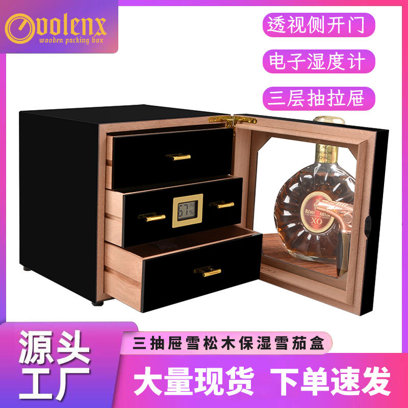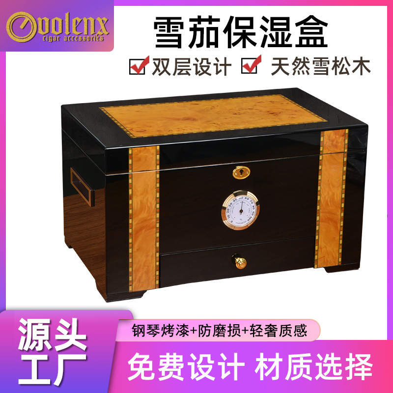 シガーボックスシマノキハイライトシガー保湿ボックス大容量シガー保湿キャビネットシングルドア引き出しシーリングシガーボックス