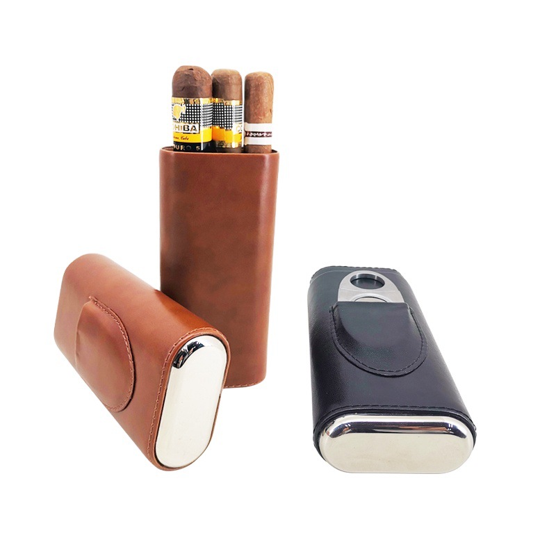 国境を越えて起爆した3本の携帯pu皮革シガー皮カバー皮質シガー収納ケースはロゴを印刷できる