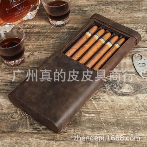 新型欧米携帯シガー収納バッグレトロ頭層牛革軽豪華保湿タバコ葉巻ケース