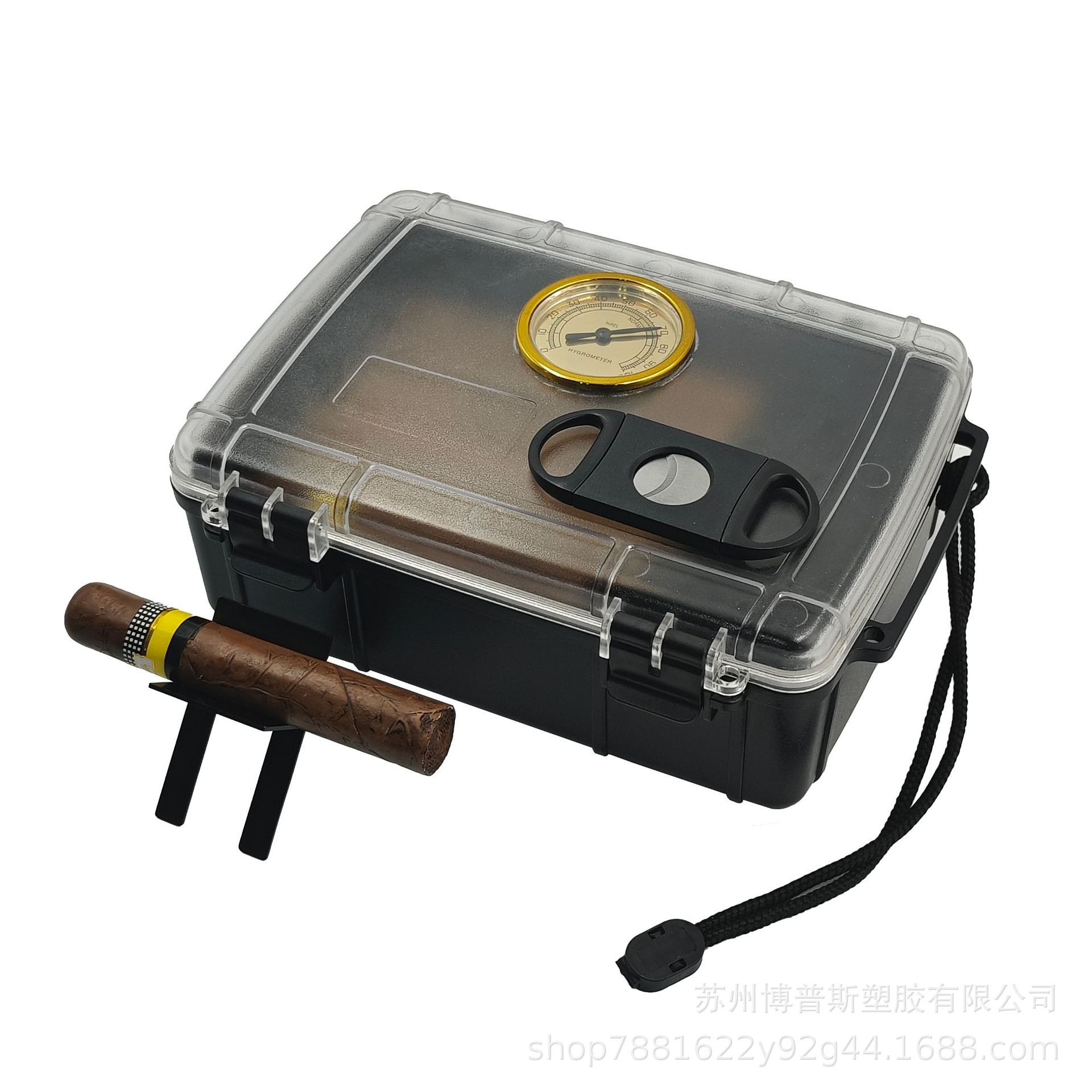 メーカー卸売りabsプラスチック保湿シガーケース防水圧壊携帯21本入湿度計シガーケース