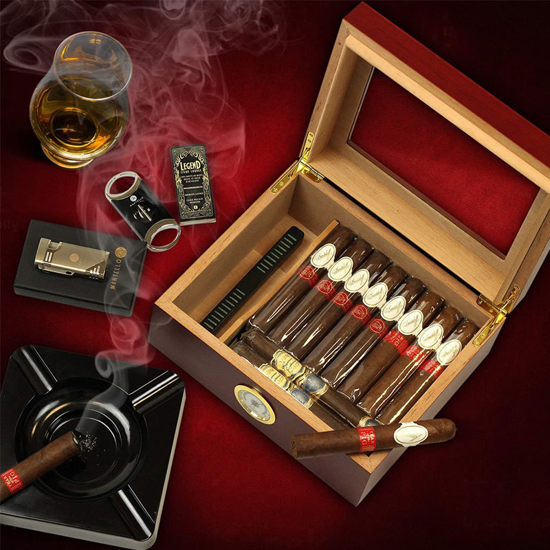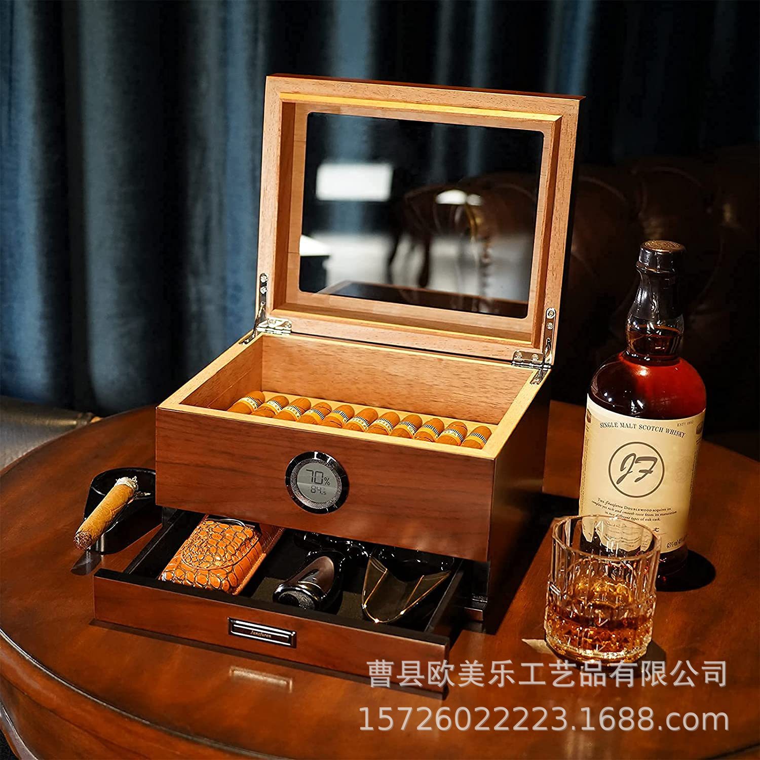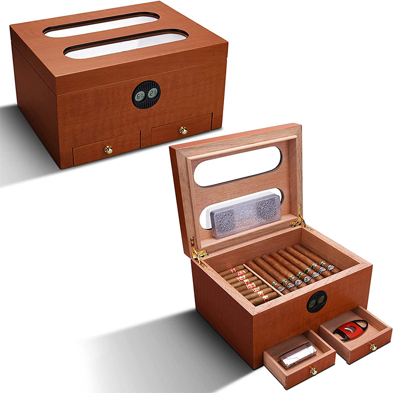 木製シガーギフトボックス男性プレゼントシガーシガーボックス木製シガー保湿ボックス2層湿度計付き