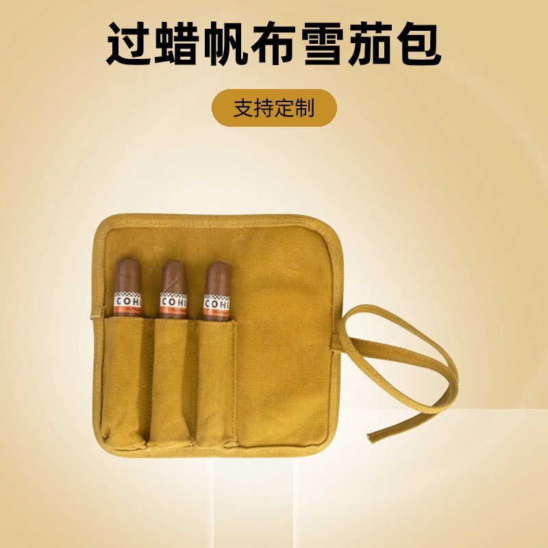 メーカー直販のオイルワックスキャンバスのシガーバッグ携帯3本入りのシガー収納バッグはロゴの現物卸売りを印刷できます。