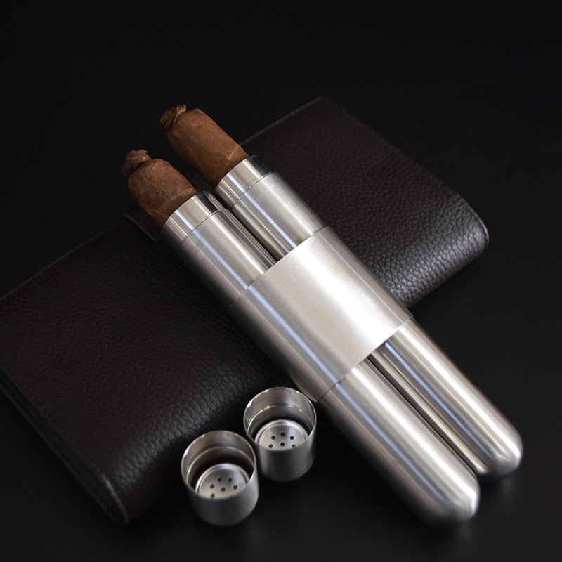 ステンレス製のシガーチューブの2本のチューブの携帯用シガー保護カバー