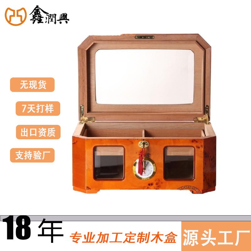 木製のふたを開けて窓を開けたシガーケース実木保湿シガーケースキューバシガーケース恒湿シガーケース