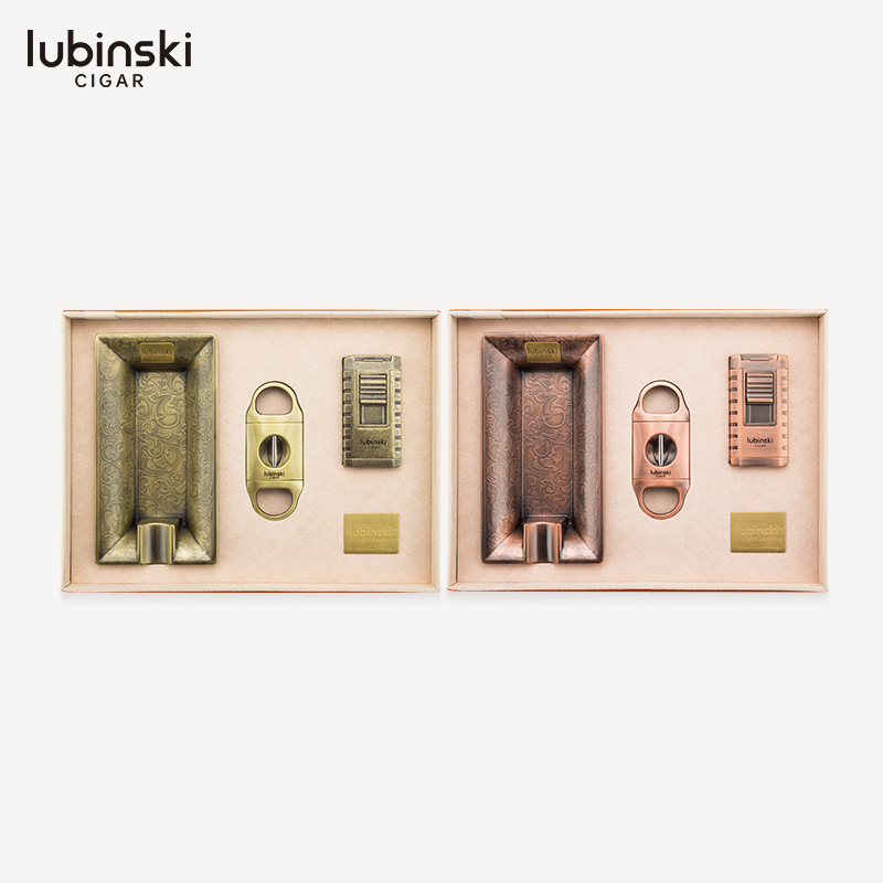 Lubinskiシガーツールセットv型はさみ合金灰皿三直沖火機復古ギフトボックス三点セット