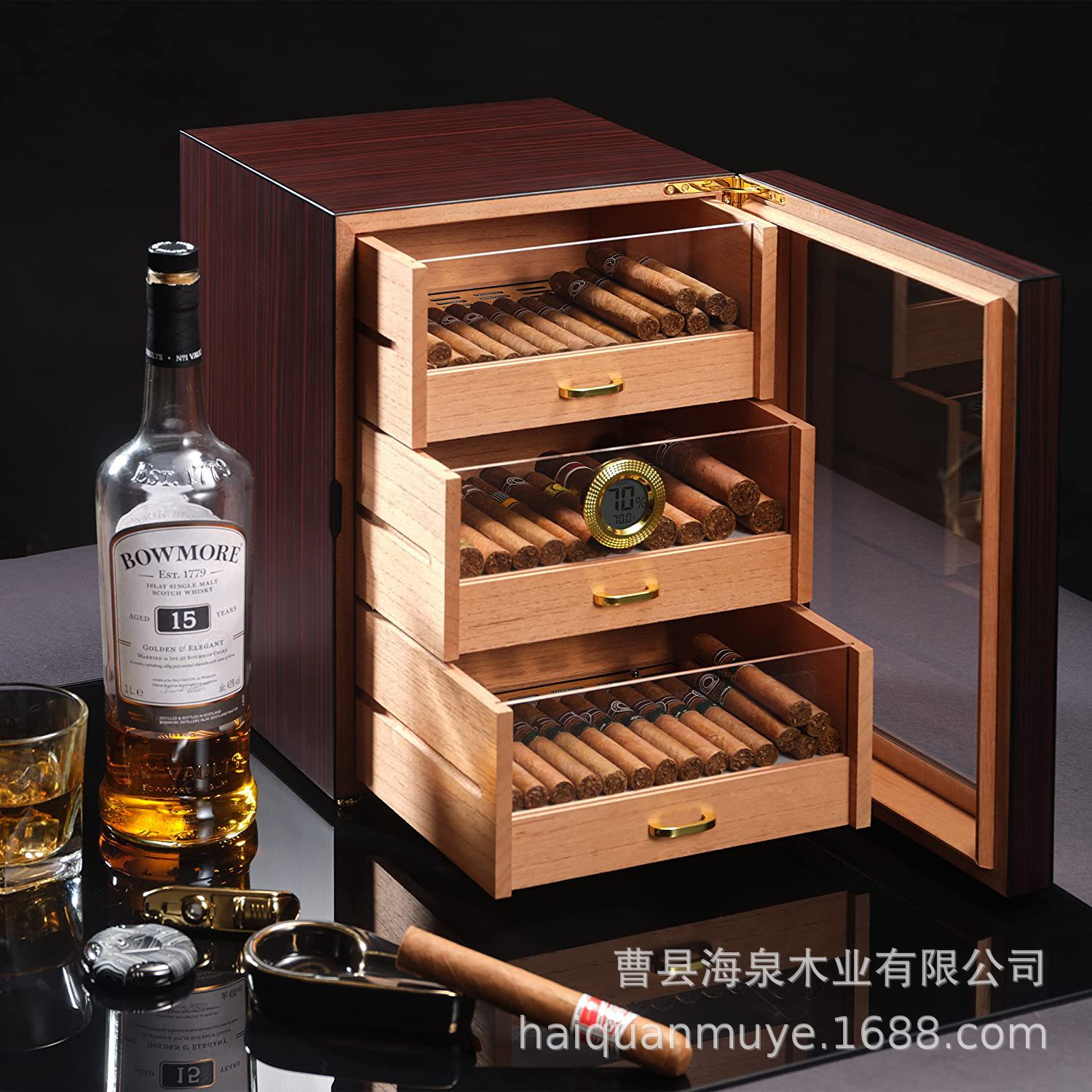 木製引き出し式シガーボックス透視窓三層シガー保湿収納ボックス大容量木製シガーボックス