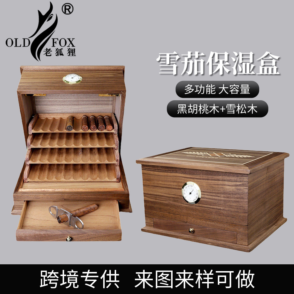 Old fox-古いキツネのシガー保湿ボックス湿度計付き黒檀のシガー収納ボックス