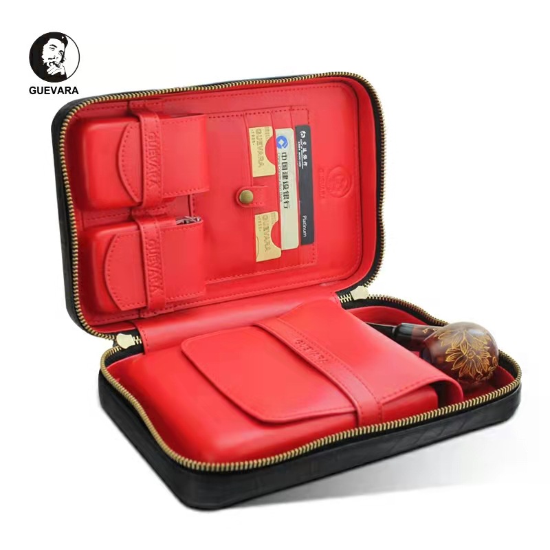 メーカー特注革製シガーバッグ 大容量シガーライター収納バッグ 高級喫煙具バッグ 卸売