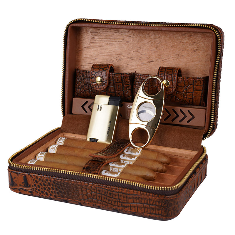 カスタム携帯型シガーボックス4本入多機能ブリーフケースシガー保湿ボックスセットプレゼントカスタムロゴ