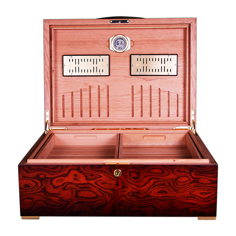 大容量シガーボックス天然シマノキシガー保湿ボックス仕切り付き加湿器湿度計ツールシガーボックス