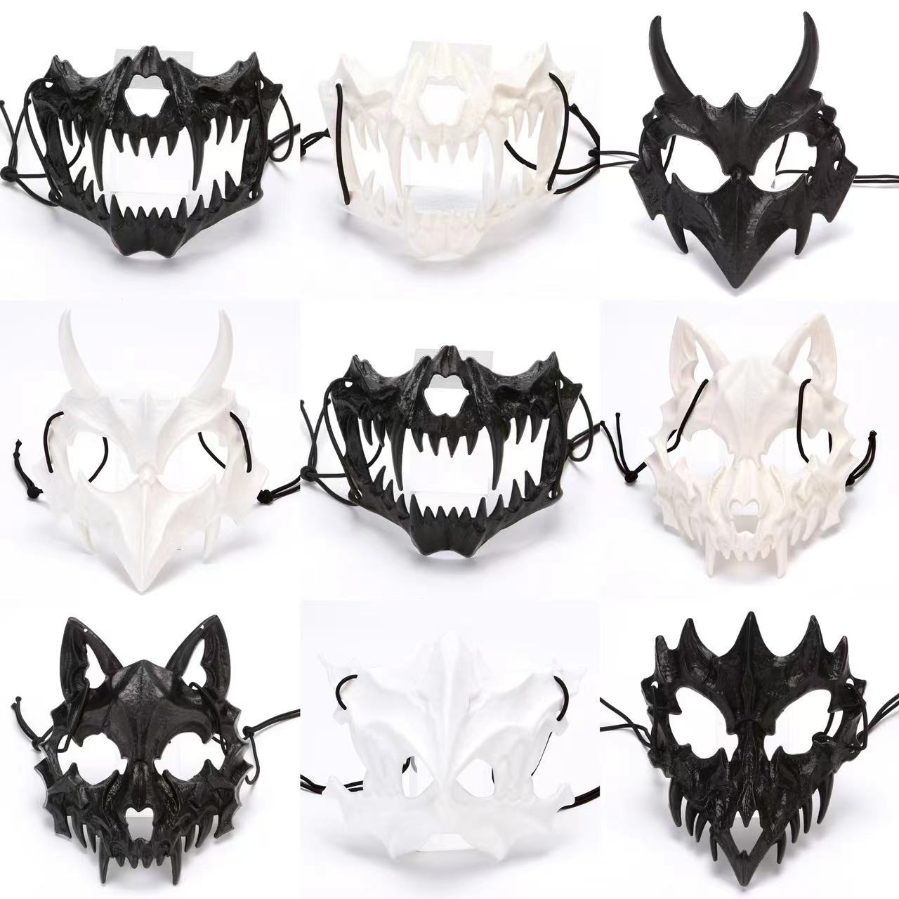 二次元半顔マスク 龍神 虎 夜叉 天狗 人狼マスク パフォーマンス コスプレ 衣装 おもしろ小道具