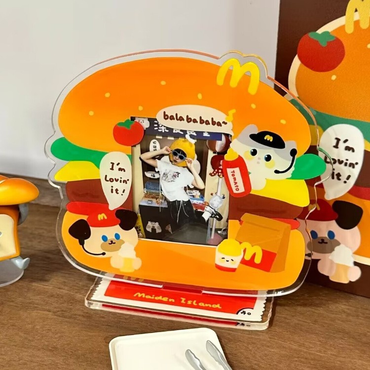 ハンバーグ子犬かわいいポラロイド 3inch 小さなカードアクリルフォトフレームスターカードデスクトップ装飾品 diy