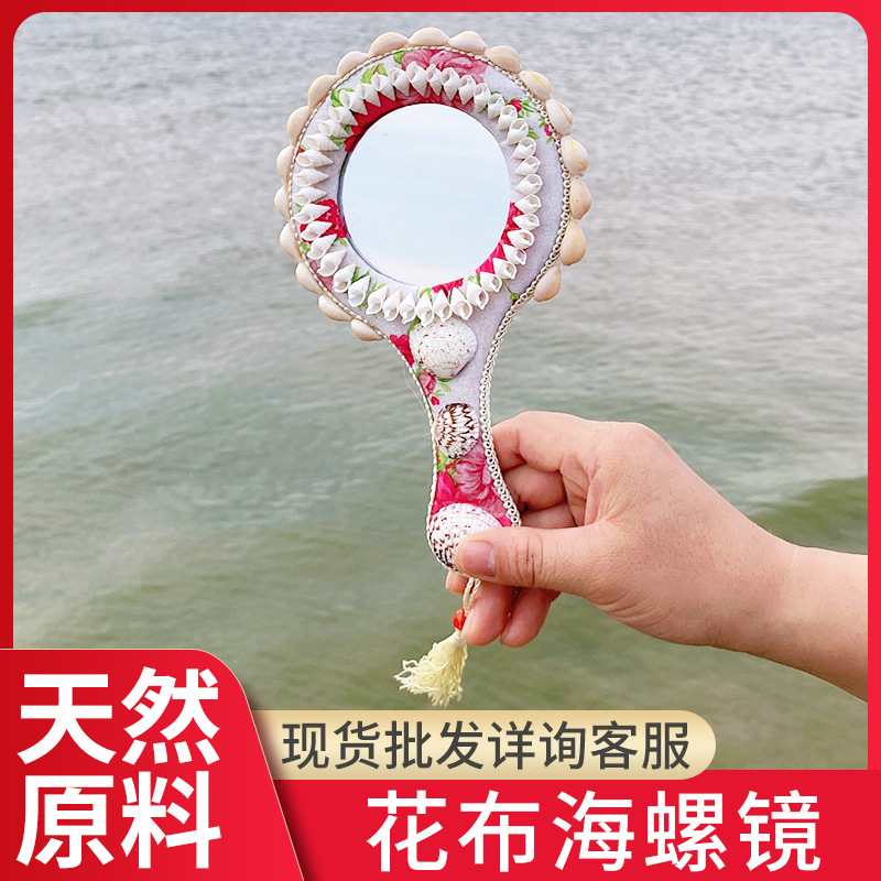 創意貝殻化粧片面鏡携帯手持ち花布海螺鏡工芸貝殻装飾品卸売り