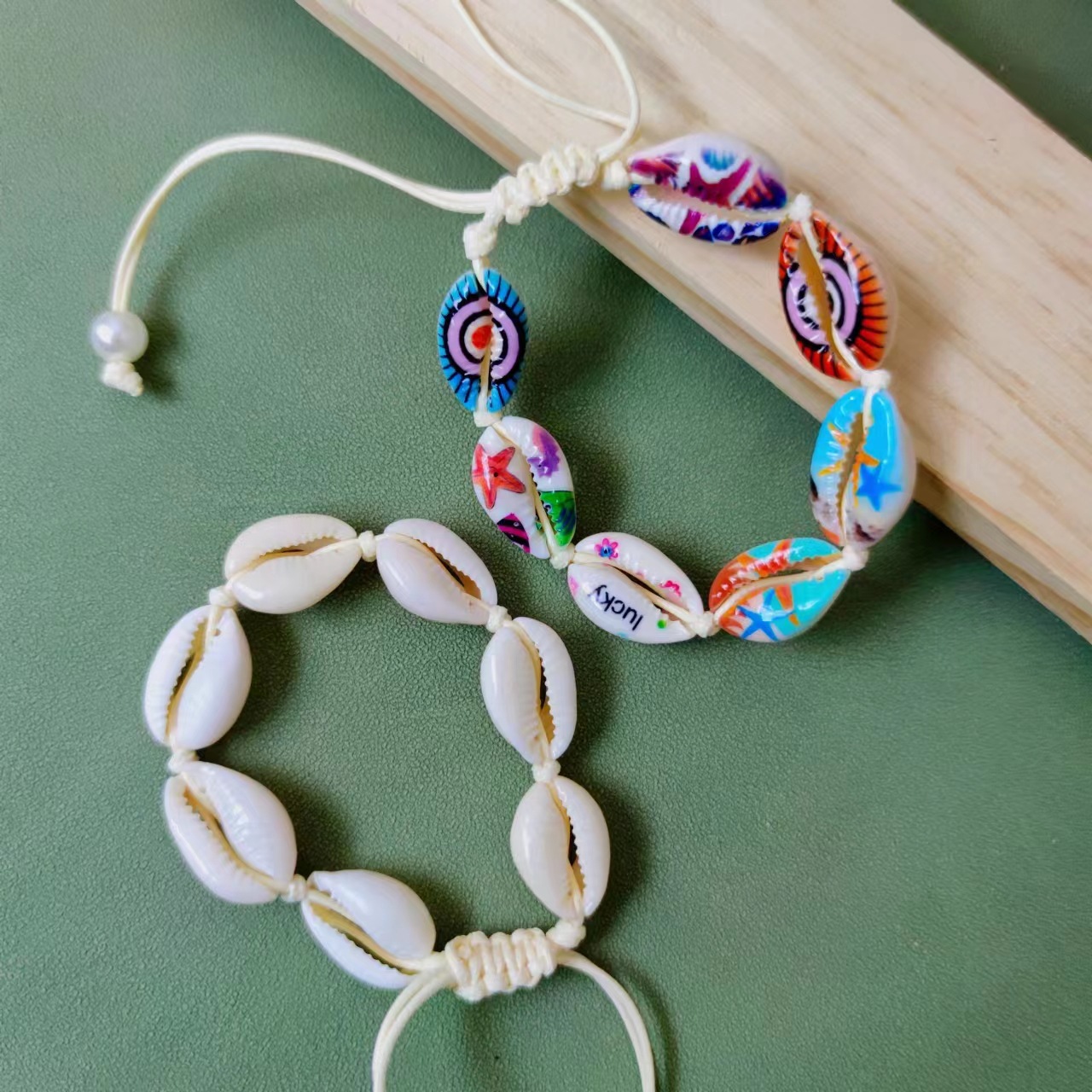 貝殻のブレスレットの金辺の貝のブレスレットの文芸のブレスレットは手綱の旅行の記念品を編みます。