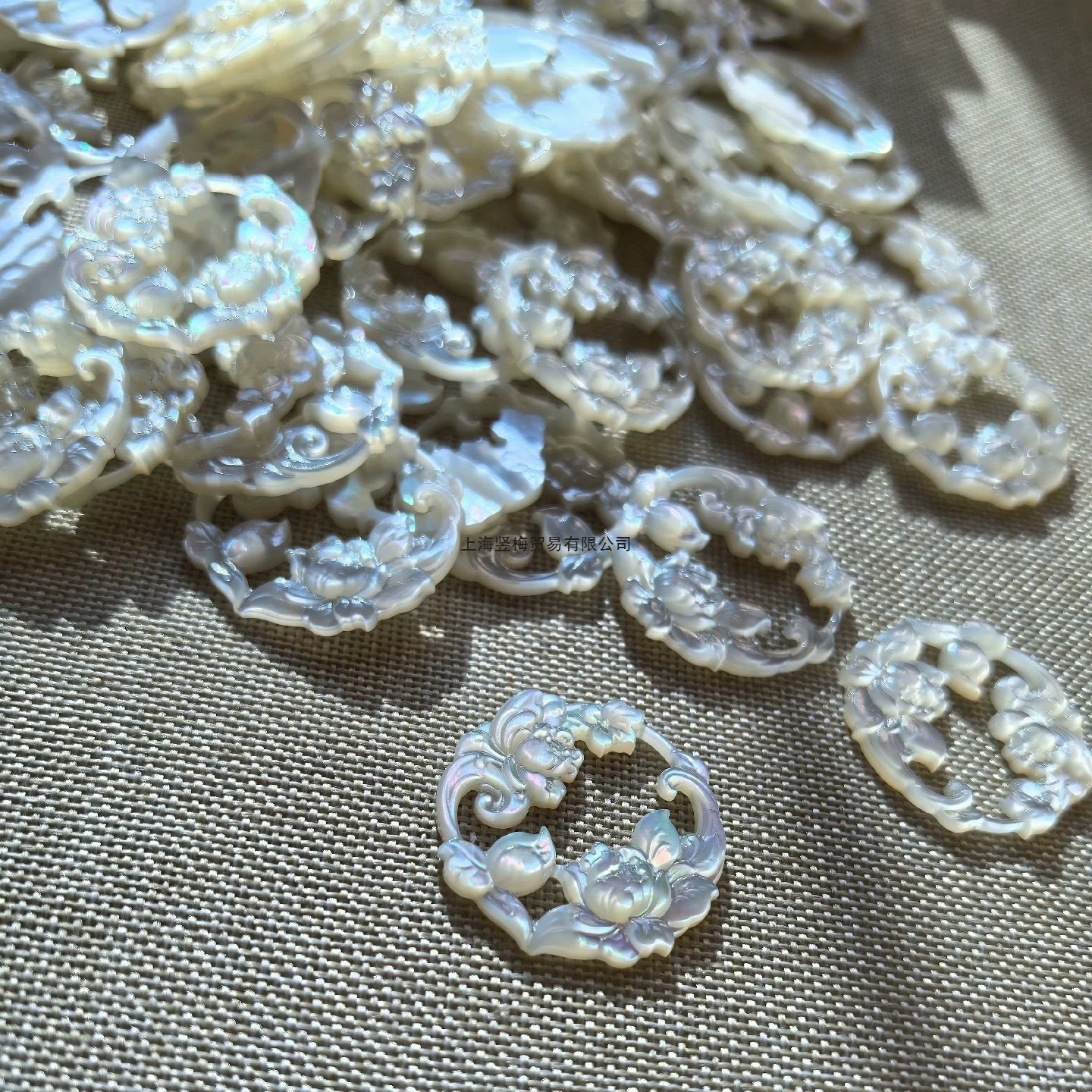 天然深海蝶貝 30 ミリメートル牡丹ガーランド蝶貝彫刻 diy ネックレスイヤリングジュエリーシェルジュエリー法螺貝