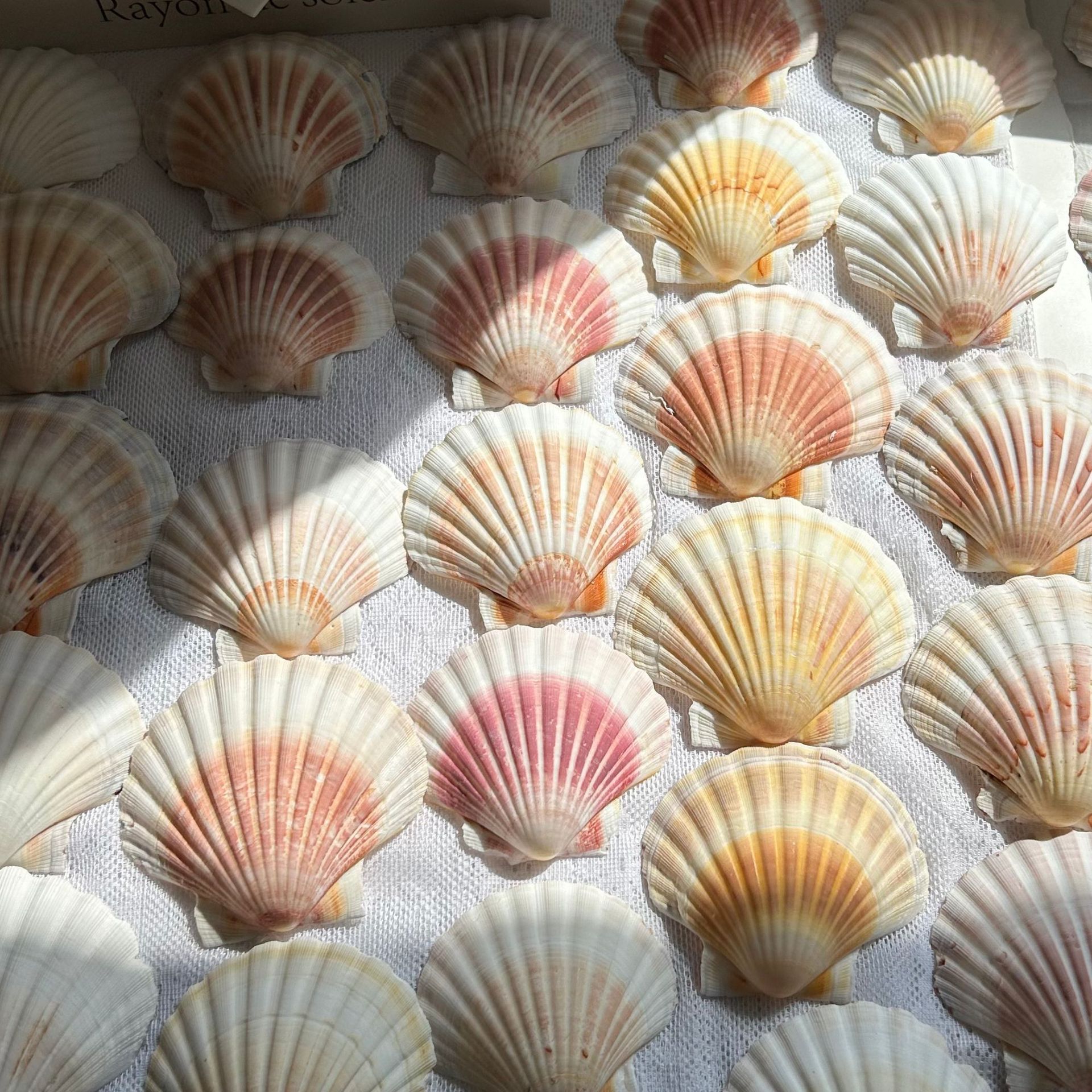 オレンジのホタテの天然の貝殻の水槽の装飾diyの結婚式の壁は鏡の枠の殻のdiyを貼ってホタテを焼きます。