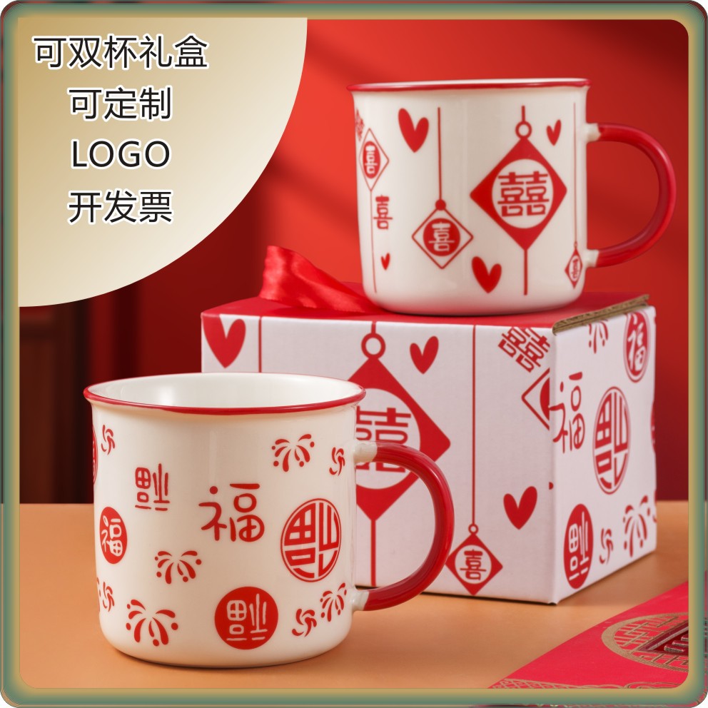 新年の結婚プレゼント喜字カップルはカップのアイデアを親友のマグカップに蓋付きカップとセラミックカップをプレゼントします