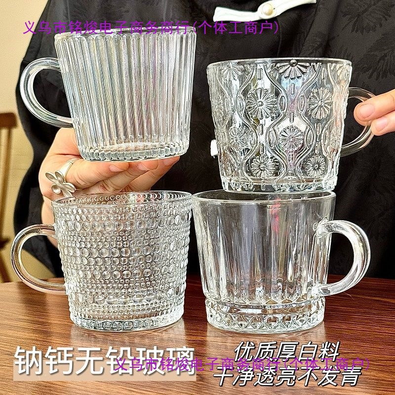 インススタイルエンボスガラスウォーターカップ家庭用ミルクカップ水出しコーヒーカップ高価値ワイングラスティーカップシンプル