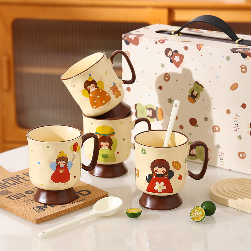 見栄えの良いかわいい女の子のセラミックカップとスプーンの錦箱セット、ビジネスギフト、結婚式のお土産、親友へのギフト