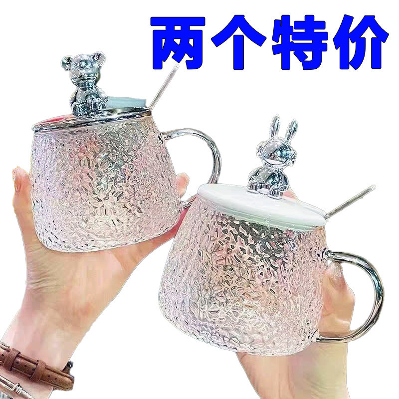 蓋付きクママグカップガラスカップ女性かわいいクリエイティブオフィスコーヒーカップウォーターカップ