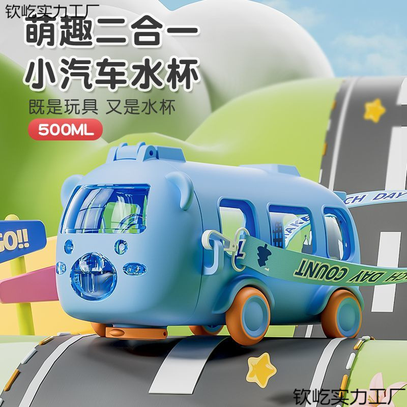 新款儿童水杯男女学生宝宝巴士高颜值吸管杯卡携幼儿园杯子
