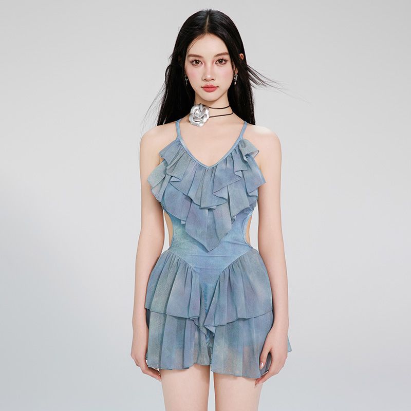 女性用水着 新しいワンピーススカートスタイル Vネック セクシー 高級 痩身 お腹カバー ノースリーブ 温泉休暇水着