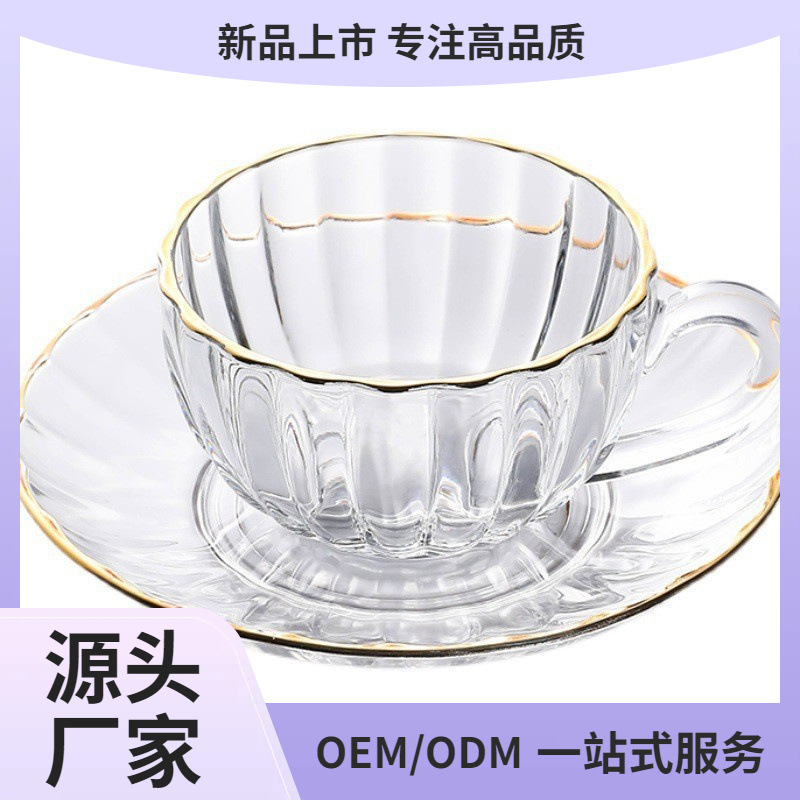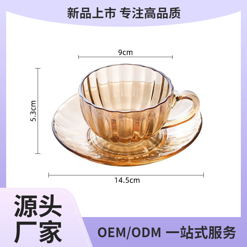 レトロなカボチャのガラスとソーサーセット、家庭用ライト高級単品コーヒーカップ、小さくて絶妙なアフタヌーンティーカップ、おもてなしカップ