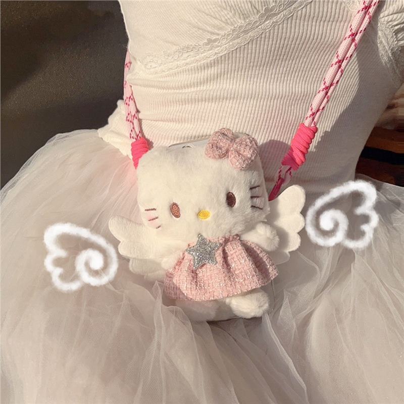 かわいいピンクのスカートハローキティクロスボディバッククリップユニバーサルぬいぐるみ取り外し可能なシェルバッククリップクロスボディストラップ