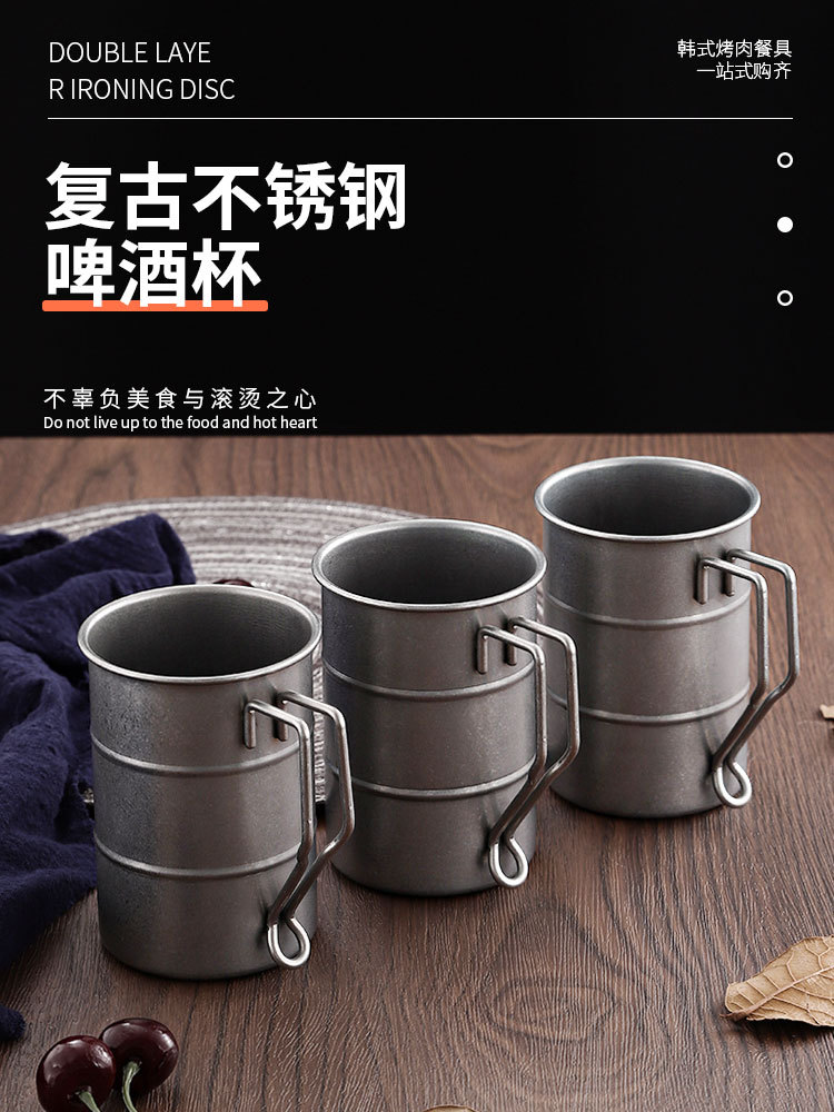 レトロなインダストリアルスタイルのビールカップ 304 ステンレス鋼マグコーヒーカップクリエイティブ古い屋外キャンプカップ