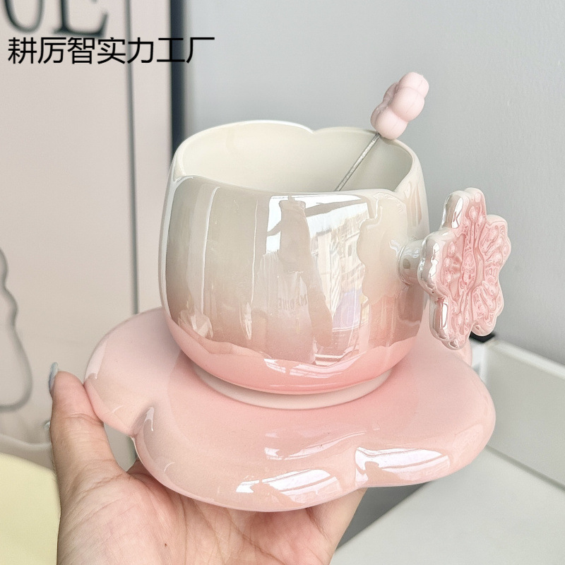 北欧スタイルのグラデーションコーヒーカップとソーサー、絶妙なオフィスアフタヌーンティーマグ、女性のお土産、ブライズメイドへの実用的なギフト