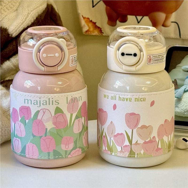 ins スタイリッシュなチューリップカップ学生キャンパスポータブルストローニッチガールズシンプルなプラスチックウォーターカップ
