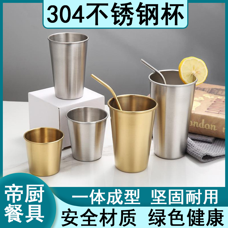 304 ステンレス鋼ビールカップジュースカップ商業ゴールデンティーカップコーヒーカップ単層ハンディカップコールドドリンクカップ