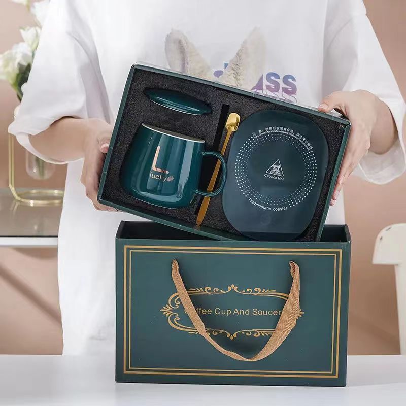 新商品55度恒温暖暖陶磁器カップセット加熱保温コースターマグカップお土産実用団建