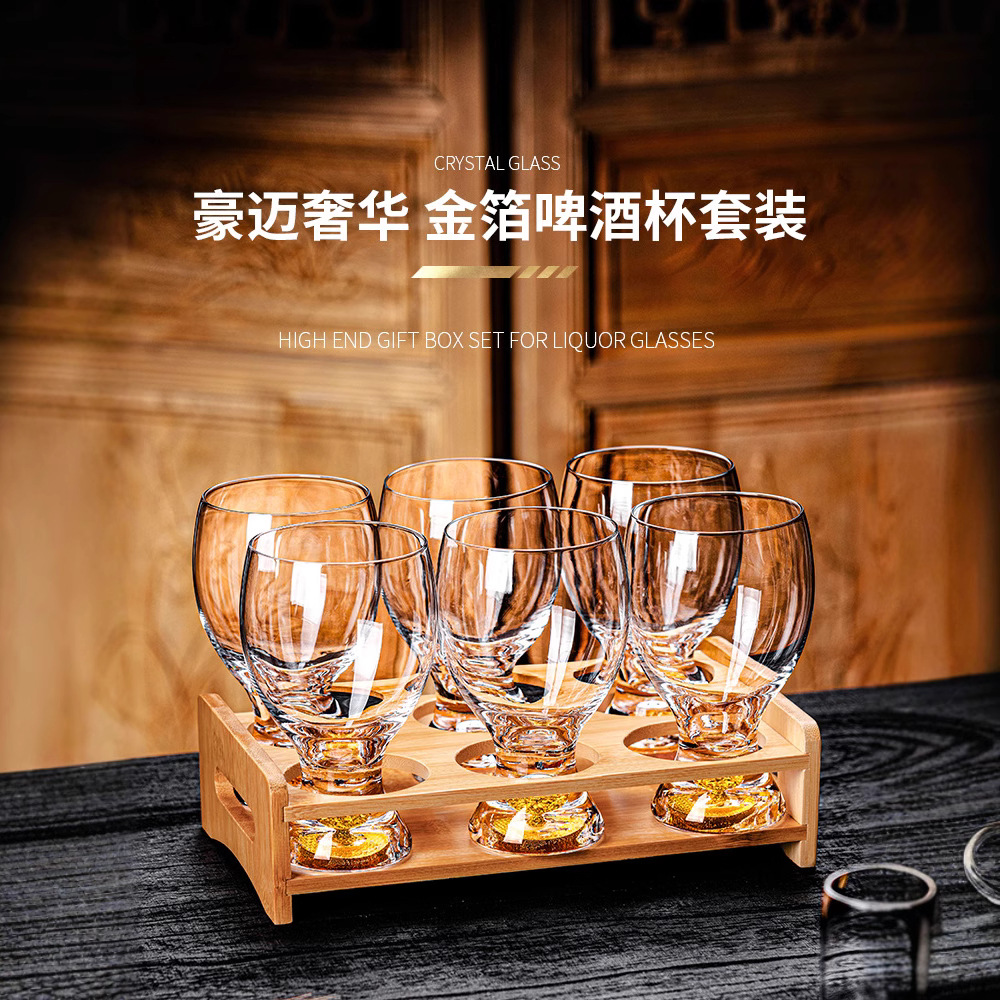 高級水晶ガラスビールカップ家庭用精醸造小麦ザビールカップホテルktv軽豪華金箔冷飲カップ