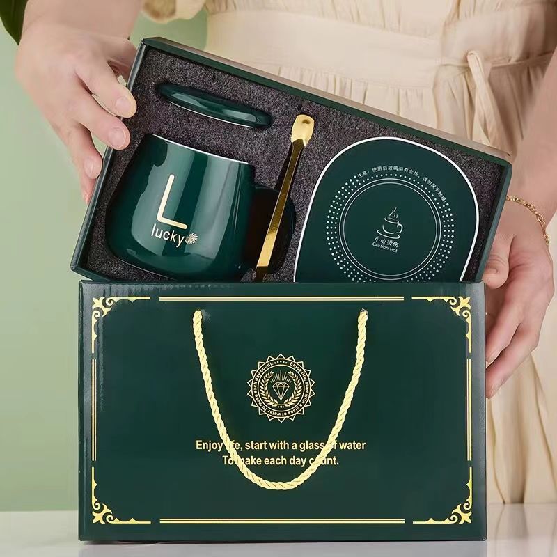 55度恒温杯ギフトボックスセット暖かい陶磁器カップマグカップ開業イベント周年慶プレゼント保温カップマット