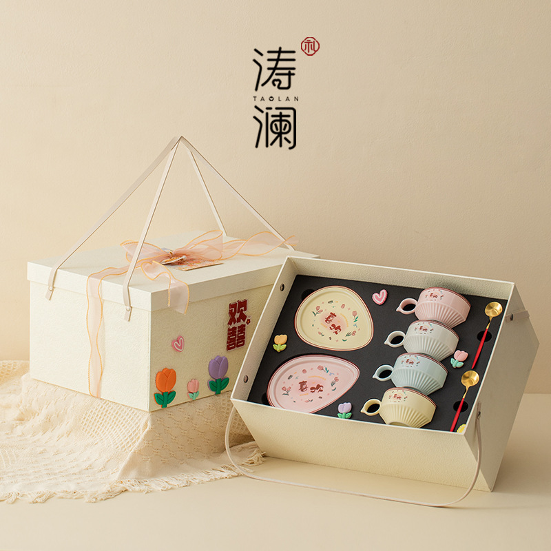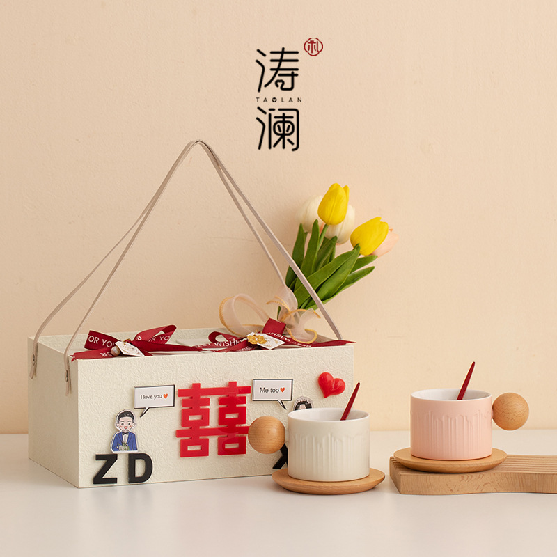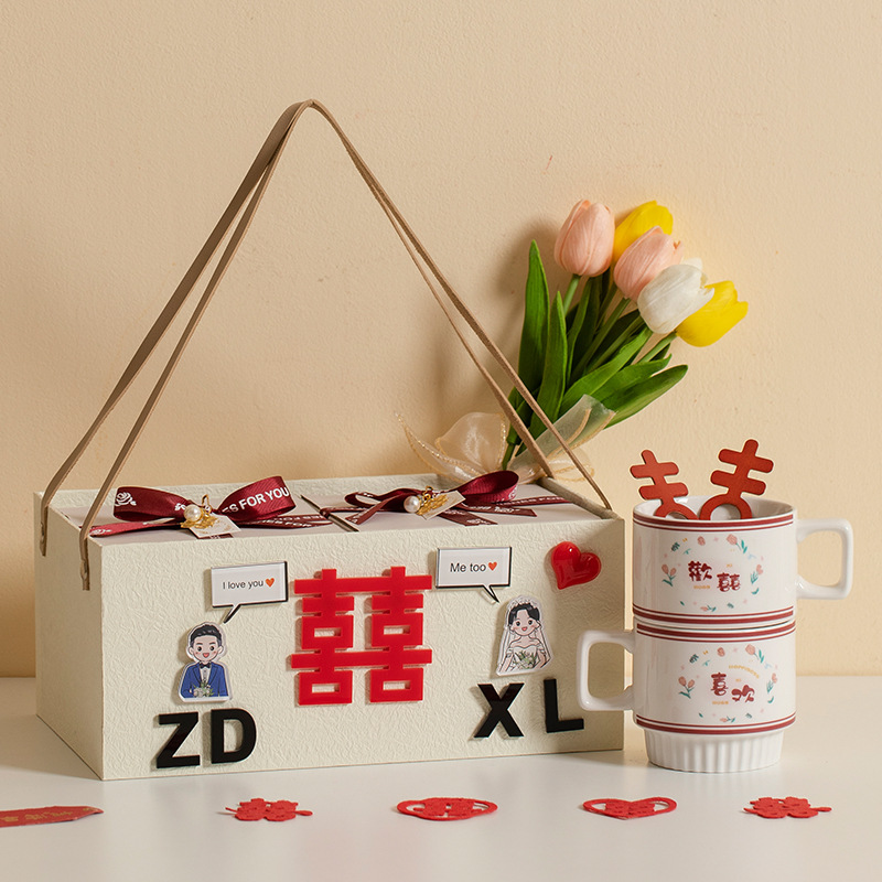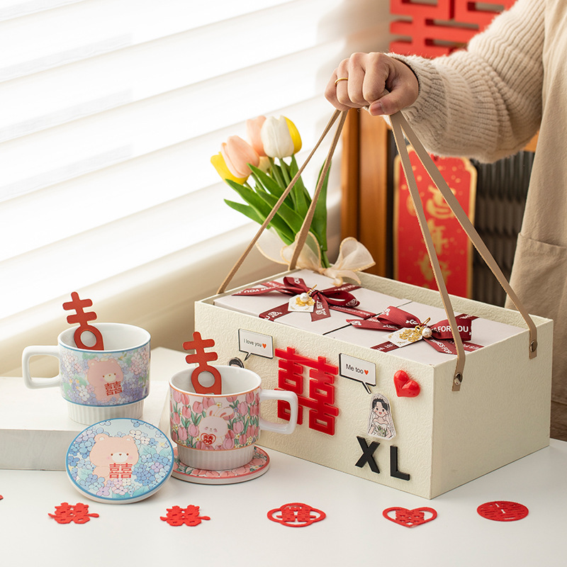 喜字マグカップ創意高颜値復古お土産カップ陶磁器歓喜カップ結婚カップル新婚高級