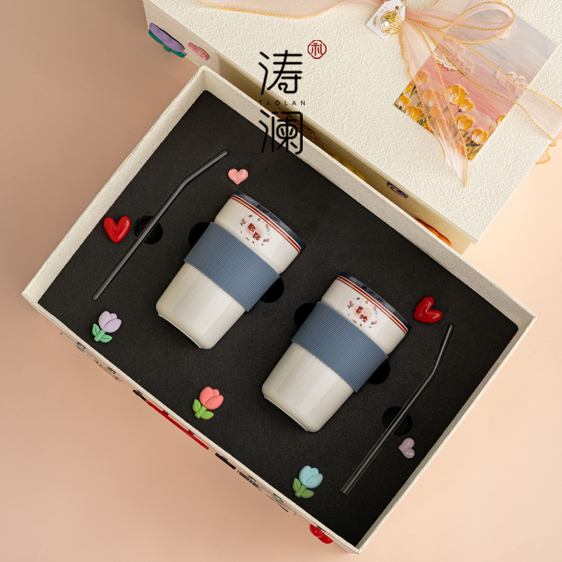 景徳鎮の陶磁器のカップルは杯のプレゼントの箱の新婚のプレゼントのマグカップの創意の陶磁器の湯飲みに対して結婚して親友を送ります。