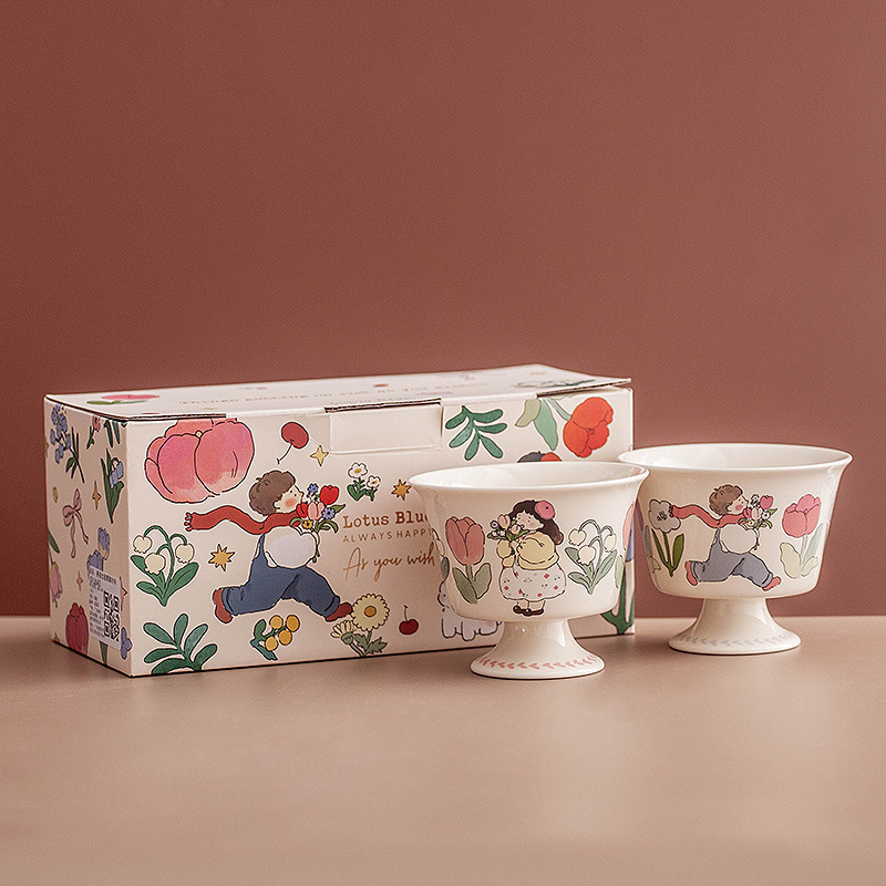 花語の秘境のユリの花の方の杯の陶磁器の高級で精巧なカップルの対の杯の結婚のお土産のスーツの贈り物の箱