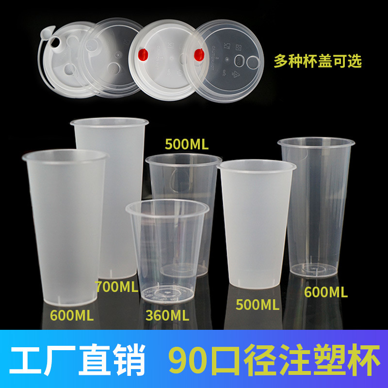 業務用ミルクティーカップ使い捨て500ml 700cフロスト射出成形カップ90口径がきれいで、蓋なし600