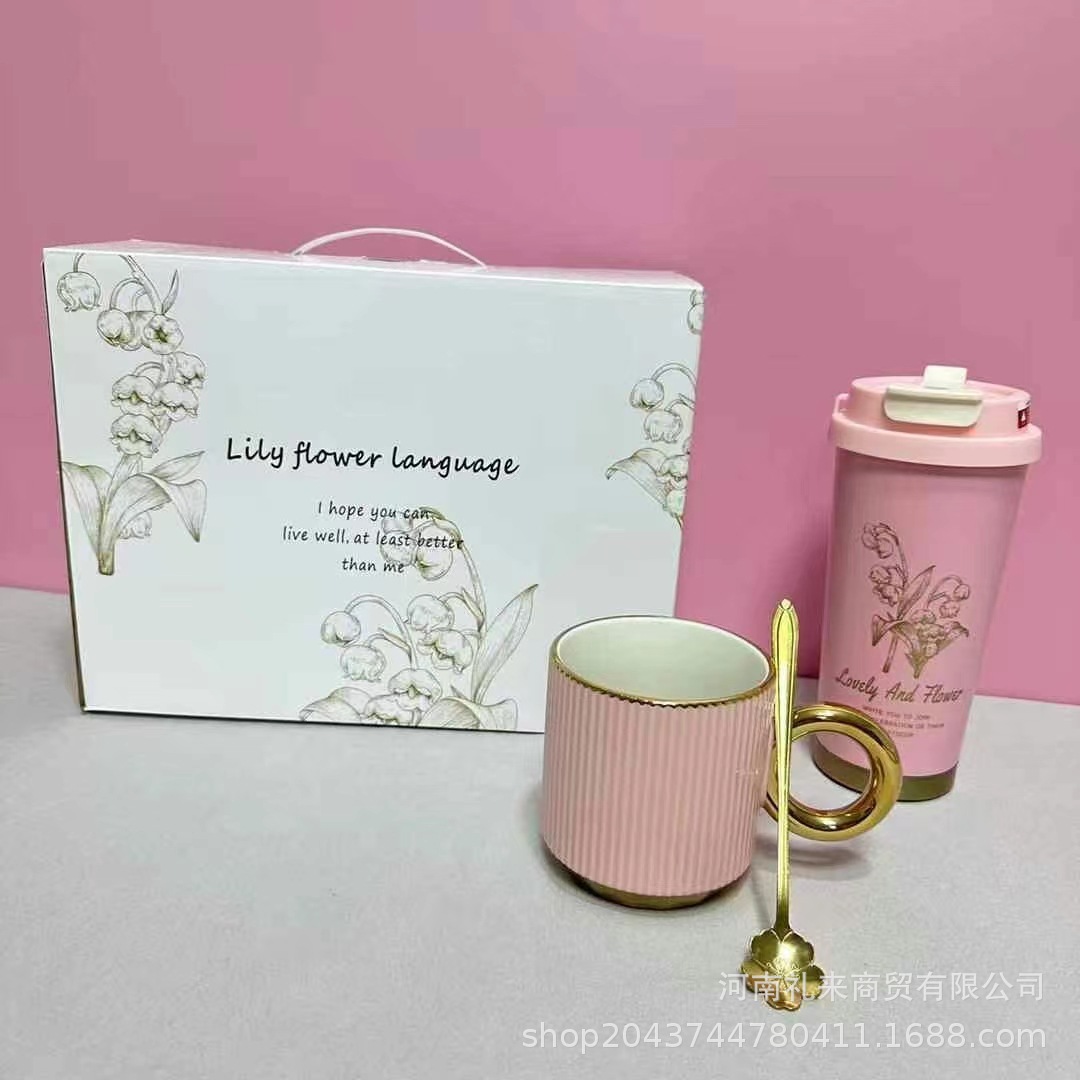 ピンクすずらんカップビジネスギフトボックス3点セット新誕生日プレゼント保温カップマグカップコップ