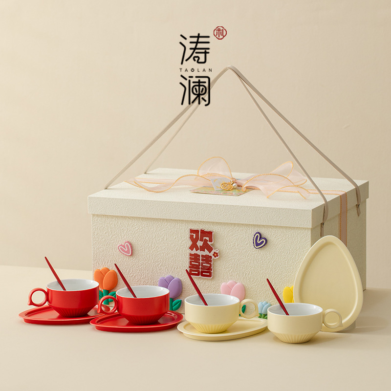 セラミックカップ家庭用リビングルームセット高颜値オフィスマグカップカップ色区分结婚カップセット云
