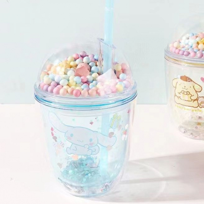対外貿易クロスボーダー二重プラスチックカップ卵カップストロー付き平蓋高颜値学生飲料ジュースワイングラス