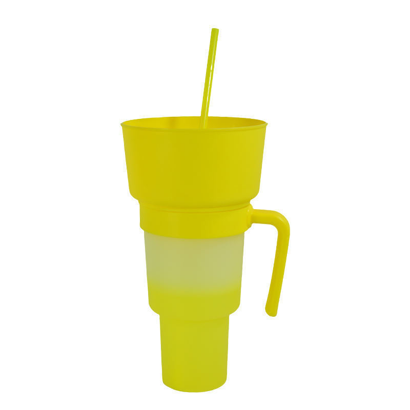 ハンドル付きストローコーラスナックカップポップコーン飲料一体カップクロスボーダープラスチック変色カップカスタム
