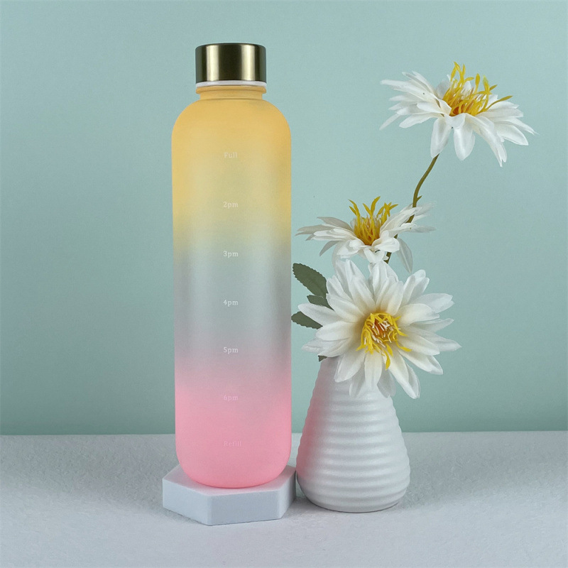 シンプルなフロスト宇宙カップ夏プラスチックコップ1000mlステンレス蓋小口瓶屋外携帯水筒