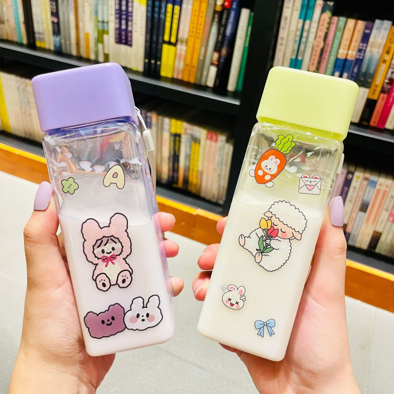 アニメかわいいins小型携帯角型コッププラスチックカップ学生夏カップシンプル透明水筒